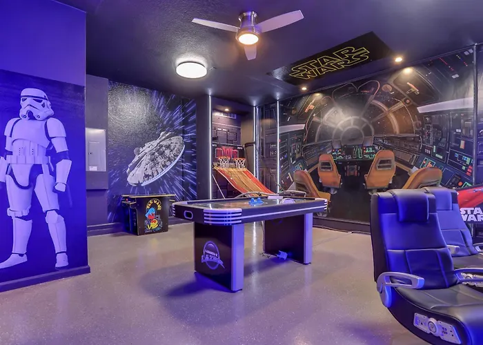 De 5-slaapkamer Free Water Park Luxury Living villa is op 10-minuten rijden van sportcomplex ESPN Wide World of Sports gelegen en biedt een zwembad, wat zorgt voor een ontspannen verblijf. De 5-badkamer accommodatie ligt in de Celebration wijk en biedt mogelijkheden om te biljart in de omgeving.